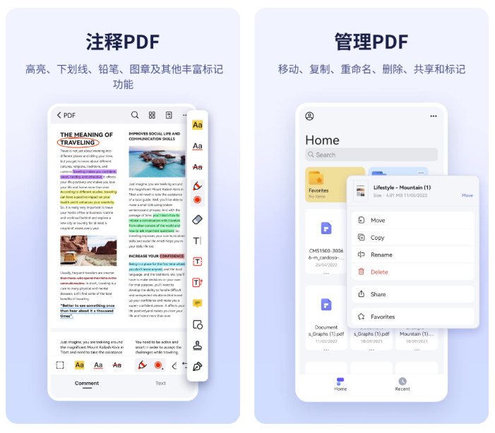 万兴PDF是手机端pdf文件编辑软件,够帮助用户在手机上轻松编辑pdf文档,支持添加高亮、下划线和删除线等注释、标注功能。用户甚至能够通过它直接将文档发送至其他 App或通过邮件发送给他人,大大简化了pdf文件的编辑难度。不仅如此,该软件还支持将多个PDF文档合并为一个新的长文档,免去了重复制作的繁琐过程,内置自定义文件夹功能能够轻松管理与查找手机内的pdf文件。值得一提的是,万兴PDF专家还支持转换文档格式,能够支持输出格式包括:Word、Excel、ppt、EPUB、HTML、Text、 RTF、Pages、XML,是您工作中的得力助手。