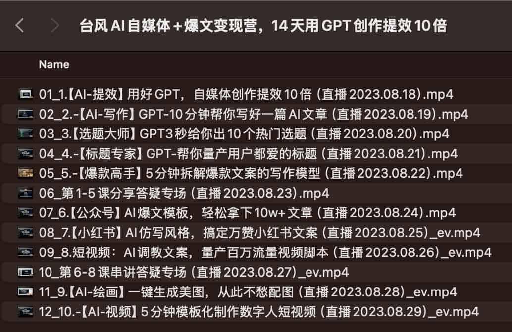 台风AI自媒体+爆文变现营,14天用GPT创作提效10倍,夸克网盘资源下载。
